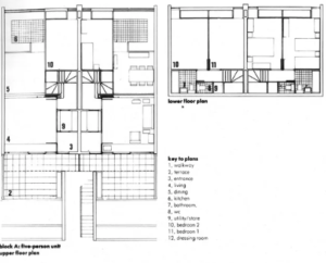“… Construcción baja, para llenar el sitio con definiciones geométricas de espacio abierto, para integrar. Y volver a la vivienda de calidad tradicional, continua, anónima, celular, de fondo repetitivo, que siempre ha sido su virtud…” (Neave Brown)