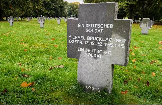 En este cementerio hay seis nombres por cada cruz, tres a cada lado, indicando los soldados que están enterrados en ese lugar. En muchos casos lo único que se lee es la frase «Ein Deutscher soldat» (Un soldado alemán), en alusión a los soldados que no pudieron ser identificados.