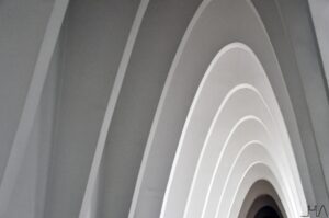 Primer y Segundo Piso: Los pisos superiores albergan las habitaciones de las religiosas y las áreas de clase. Aquí se encuentra un juego de ventanas de arcos de medio punto en la parte superior que proporcionan una iluminación natural. Estas ventanas son una de las características distintivas de Gaudí, que las usa no solo como elementos funcionales, sino como elementos decorativos en su obra.