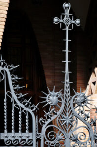 Elementos Decorativos: La decoración del Colegio de las Teresianas incorpora elementos simbólicos, tales como anagramas de Jesucristo, escudos carmelitas y cruces de cuatro brazos, representando la devoción religiosa de la comunidad. Además, la estructura es adornada con trencadís, una técnica característica de Gaudí que cubre algunas de las superficies verticales.