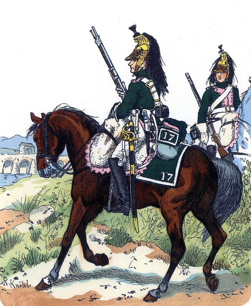 Richard Knötel, 17 ° Regimiento de Dragones franceses, Uniformology, 1812. Recuperado de: http://www.uniformology.com/NAPIMAGES/Knotel_1812_-_17th_Dragoons.jpg