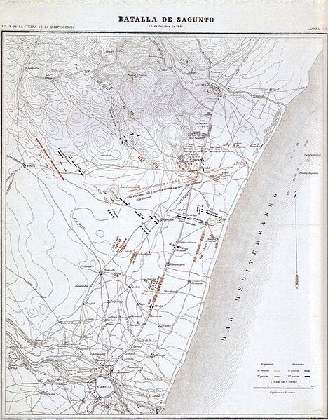 - José Gómez de Arteche, Plano de la Batalla de Sagunto incluido en el Atlas de la Guerra de la Independencia, Atlas de la Guerra de la Independencia, 1837. Recuperado de: https://commons.wikimedia.org/wiki/File:Atlas_Guerra_Ind.jpg