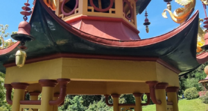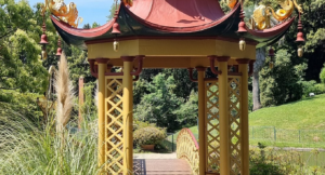 La presencia de la cultura china se manifiesta en el puente y en una capilla durante el acto dos, con elementos clásicos de esta cultura, como sus techos curvilíneos, los remates con dragones lacados en pintura dorada, el puente arqueado, el color rojo y amarillo —símbolo de la prosperidad—, las campanas colgantes y sus trazos geométricos rectos en las ventanas y el barandal del puente.