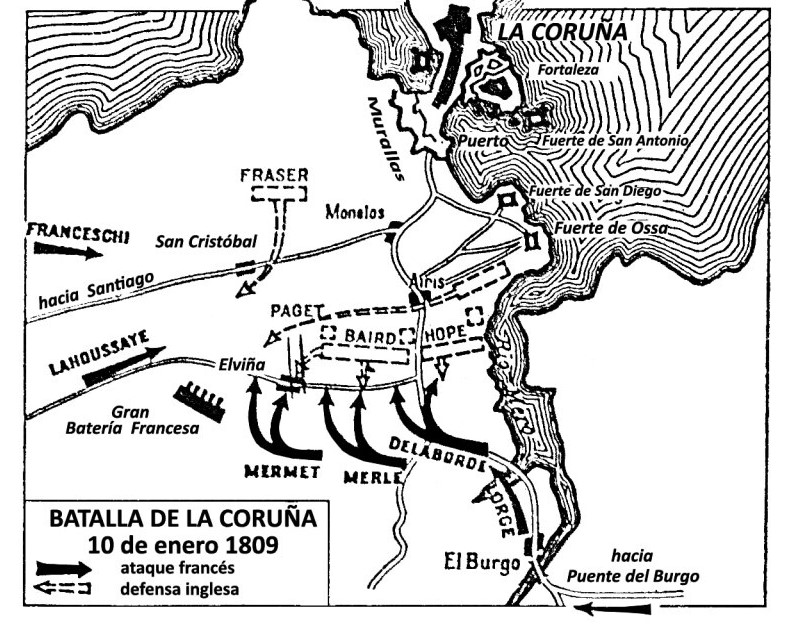 - Valdez, F., Mapa de la batalla de Coruña, Mariscal Jean de Dieu Soult, duque de Dalmacia. Memorias España y Portugal,